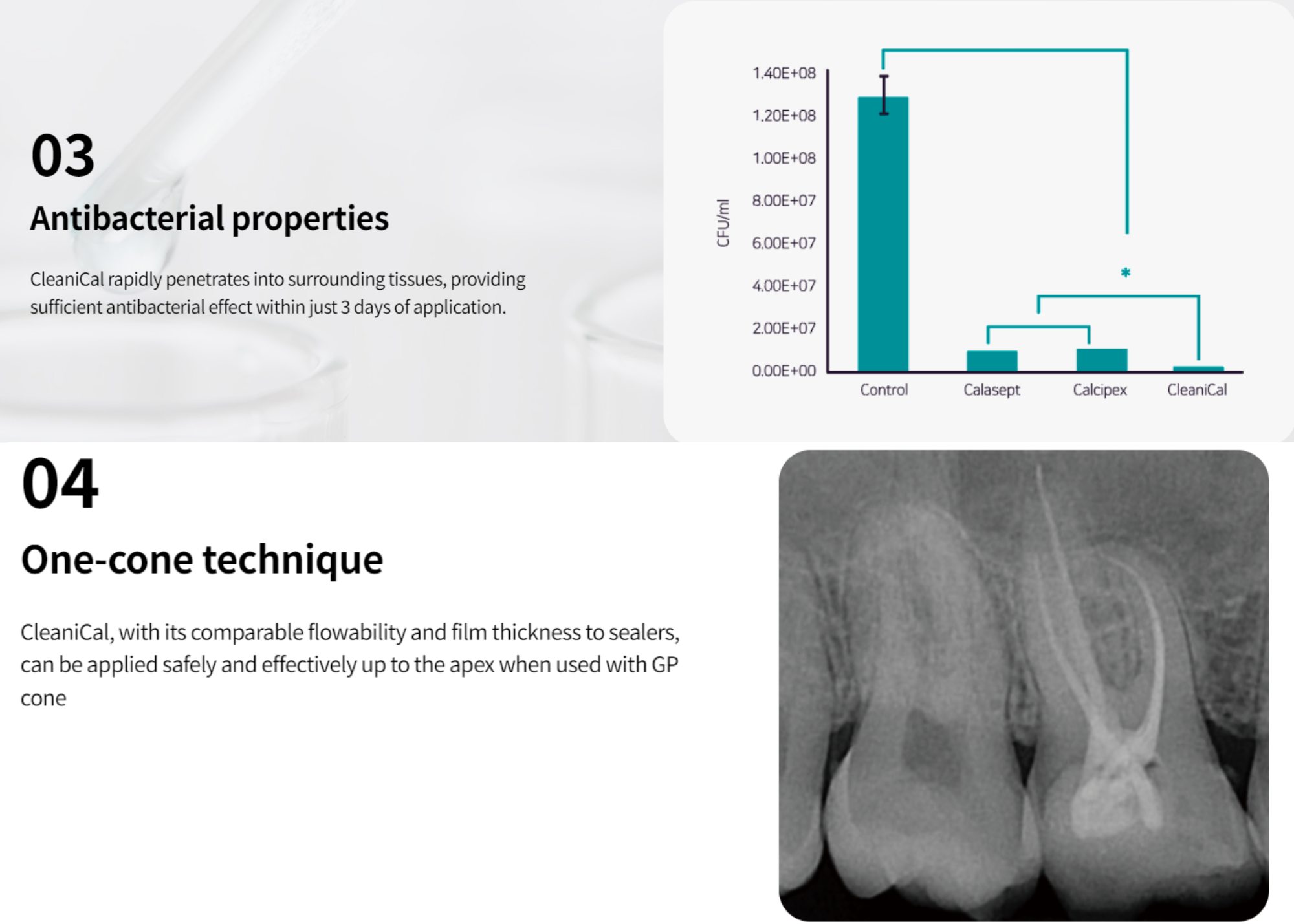 - Quick and strong Antibacterial properties: CleaniCal rapidly penetrates into surrounding tissues. See the effect in just 3 days